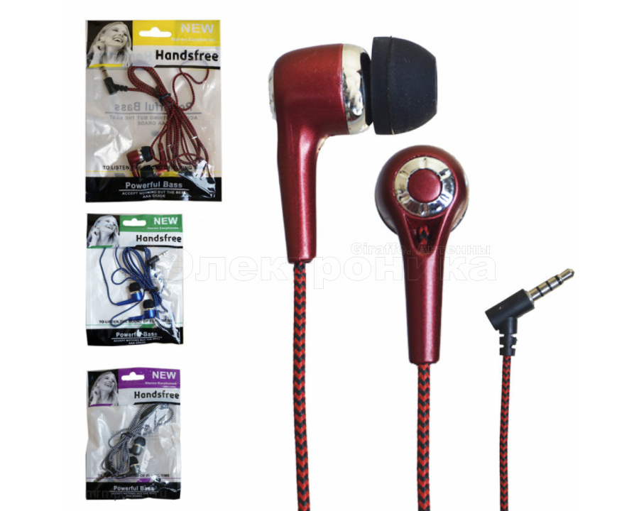 Наушники и гарнитуры, Наушники проводные (в пакетиках), Наушники проводные i060 в пакетике угловой аукс (тканевый)